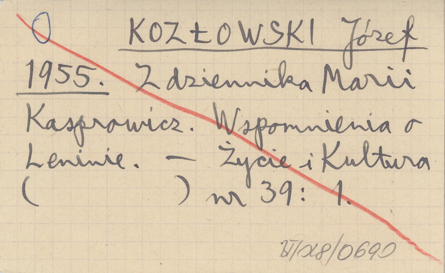 KOZŁOWSKI Józef 1955 Z dziennika Marii Kasprowicz. Wspomnienia o Leninie.