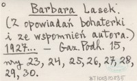 Barbara Lasek. (Z opowiadań bohaterki i ze wspomnień autora). 1927...