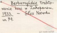 Barbarzyńskie traktowanie koni w Zakopanem. 1933