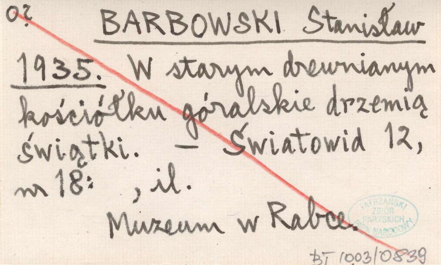 BARBOWSKI Stanisław 1935 W starym drewnianym kościółku góralskie drzemią świątki.