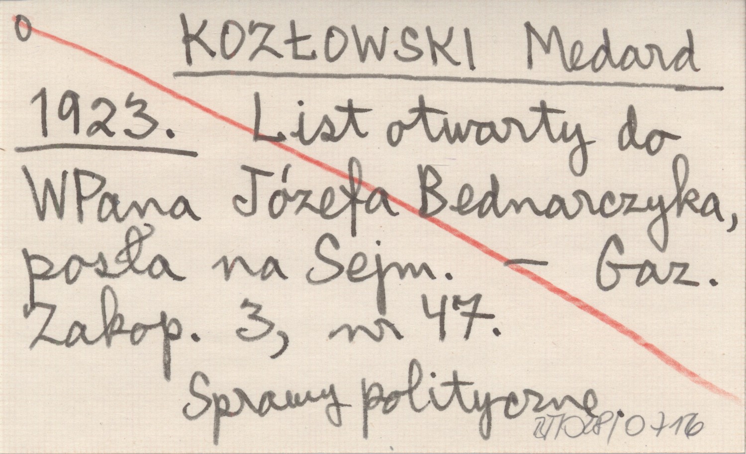 KOZŁOWSKI Medard 1923 List otwarty do WPana Józefa Bednarczyka, posła na Sejm.
