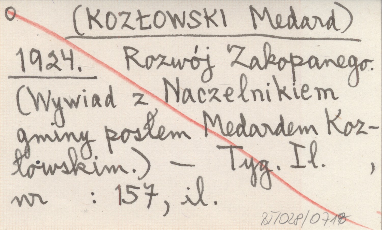 (KOZŁOWSKI Medard) 1924 Rozwój Zakopanego. (Wywiad z Naczelnikiem gminy posłem Medardem Kozłowskim.).