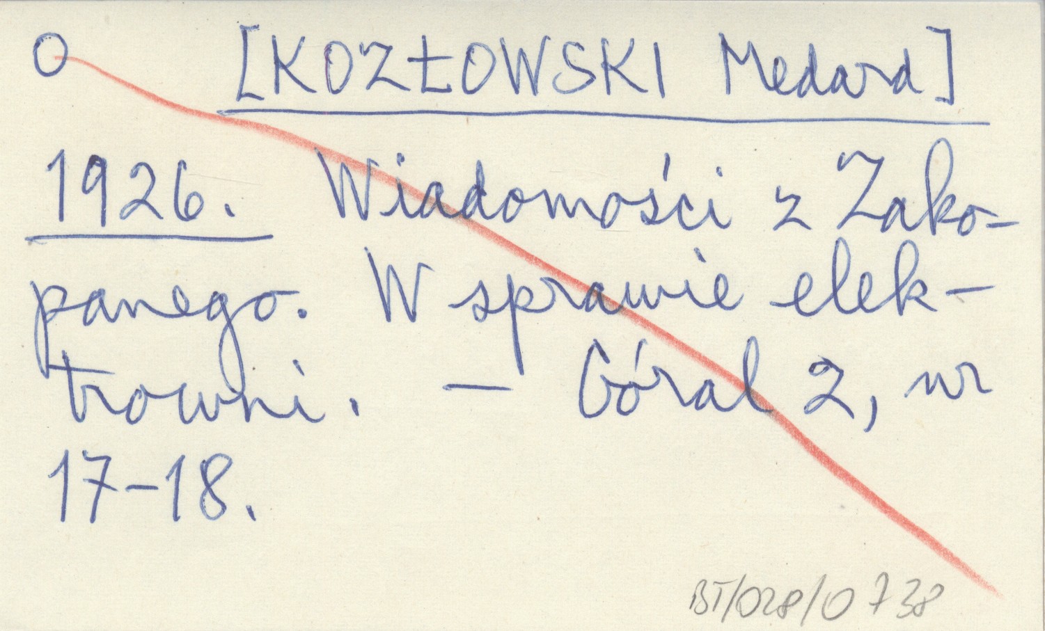 [KOZŁOWSKI Medard] 1926 Wiadomości z Zakopanego. W sprawie elektrowni.