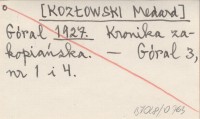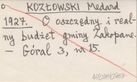 KOZŁOWSKI Medard 1927 O oszczędny i realny budżet gminy Zakopane.