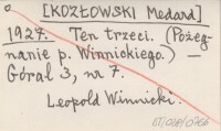 [KOZŁOWSKI Medard] 1927 Ten trzeci. (Pożegnanie p. Winnickiego.).