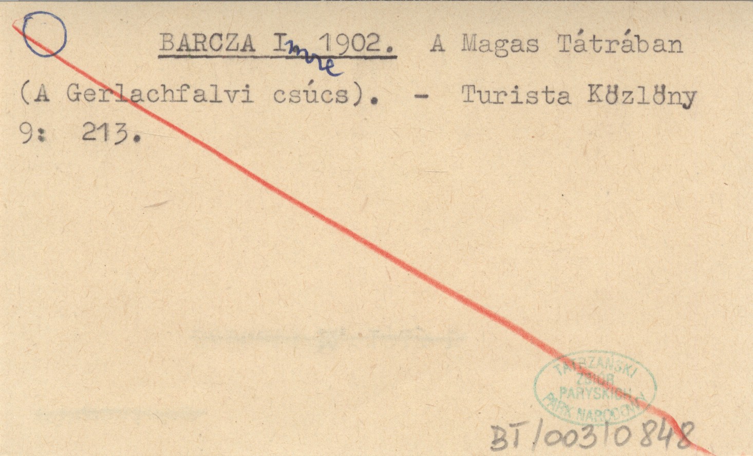 Turista Közlöny, 9: 213.