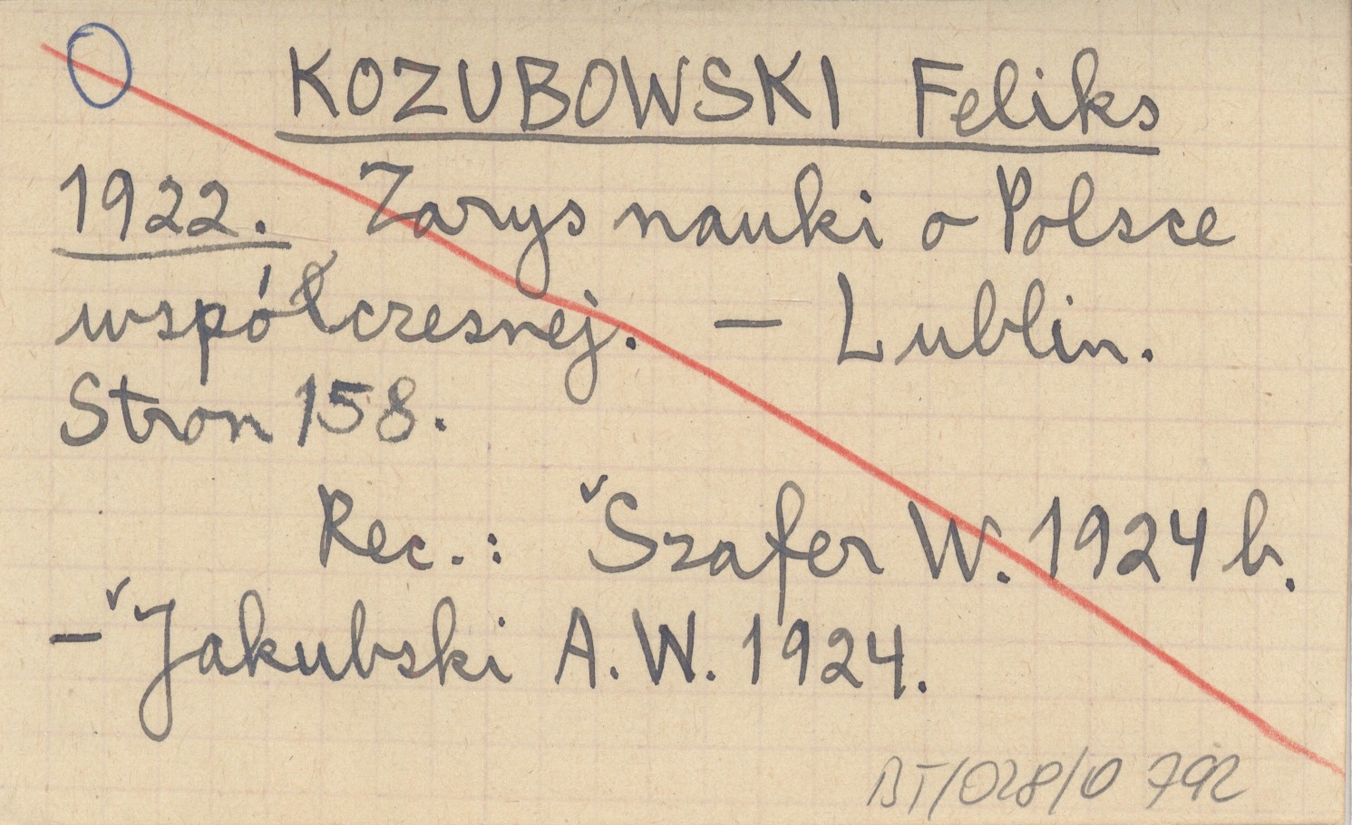 Lublin , 158 s. REC: SZAFER W. 1924 b ; JAKUBSKI A. W. 1924 ;