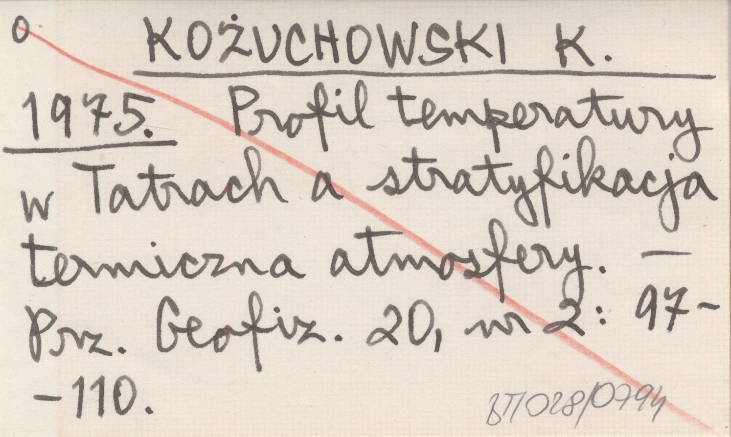 KOŻUCHOWSKI K. 1975 Profil temperatury w Tatrach a stratyfikacja termiczna atmosfery.