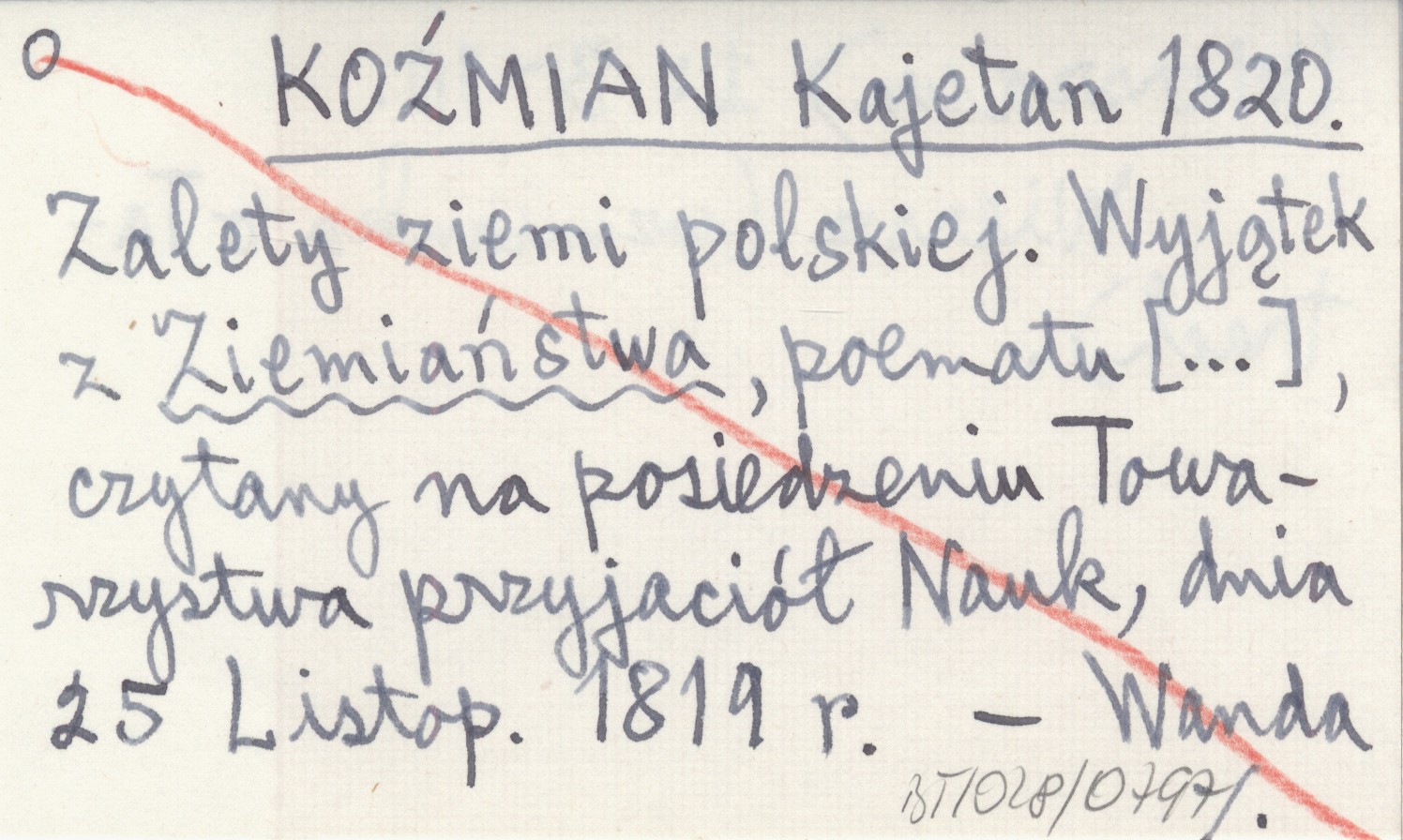 KOŹMIAN Kajetan 1820 Zalety ziemi polskiej. Wyjątek z Ziemiaństwa, poematu [...], czytany na posiedzeniu Towarzystwa przyjaciół Nauk, dnia 25 Listop. 1819 r.