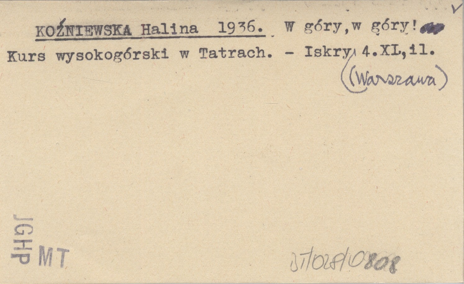 KOŹNIEWSKA Halina 1936 W góry, w góry! Kurs wysokogórski w Tatrach.