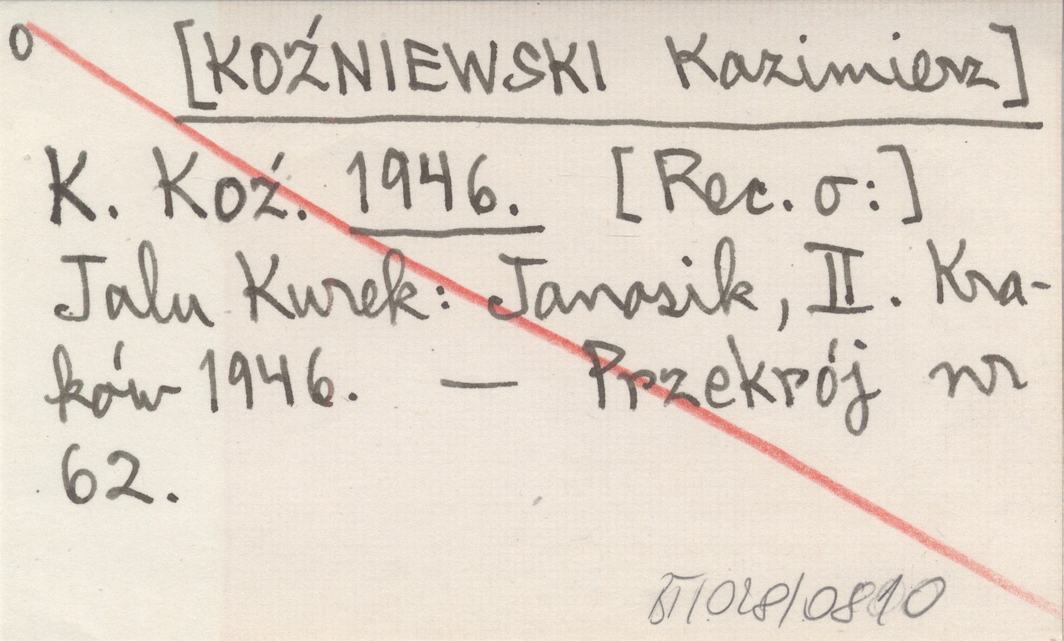 K. Koź. [KOŹNIEWSKI Kazimierz] 1946 Jalu Kurek: Janosik, II. Kraków 1946.