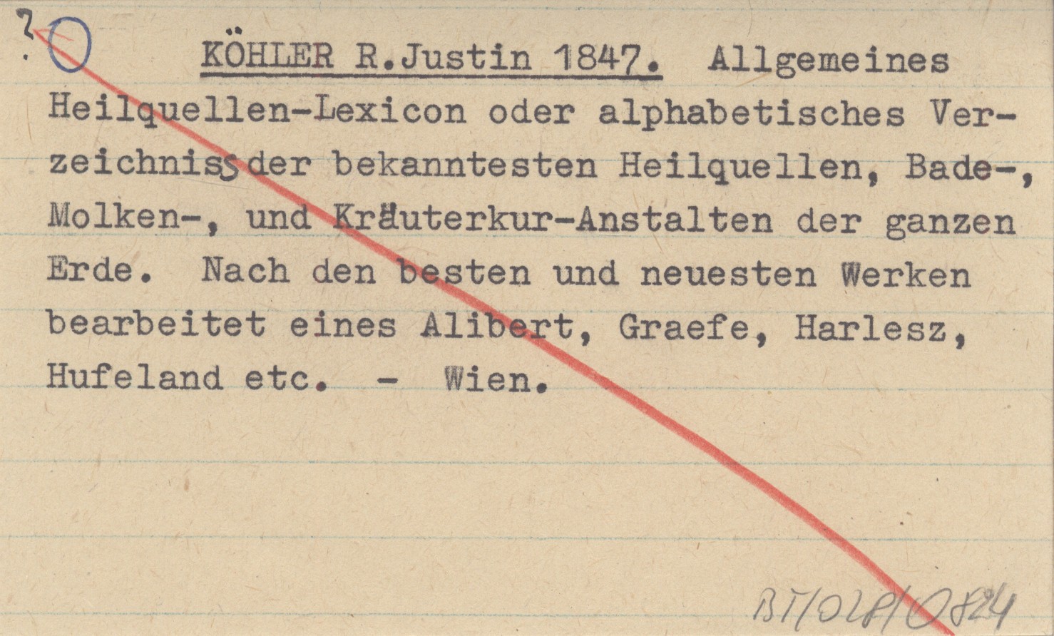KÖHLER R. Justin 1847 Allgemeines Heilquellen-Lexicon oder alphabetisches Verzeichniss der bekanntesten Heilquellen, Bade-, Molken-, und Kräuterkur-Anstalten der ganzen Erde. Nach den besten und neuesten Werken bearbeitet eines Alibert, Graefe, Harlesz, Hufeland etc.