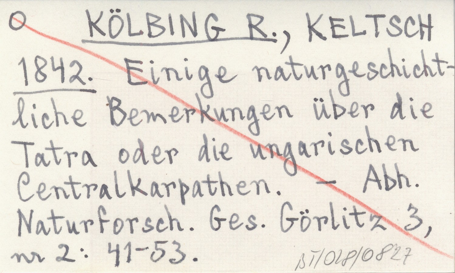 KELTSCH KÖLBING R. 1842 Einige naturgeschichtliche Bemerkungen über die Tatra oder die ungarischen Centralkarpathen.