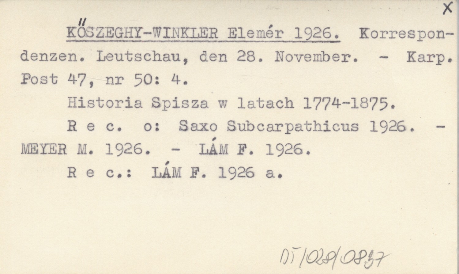 Karpathen-Post, 47, nr 50: 4. Historia Spisza w latach 1774-1875. Rec. o: Saxo Subcarpathicus 1926 ; MEYER M. 1926 ; LÁM F. 1926 ; REC: LÁM F. 1926 a