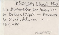 KŐSZEGHY Elemér 1930 Die Denkmäler der Antoniter in Drautz (Zips).