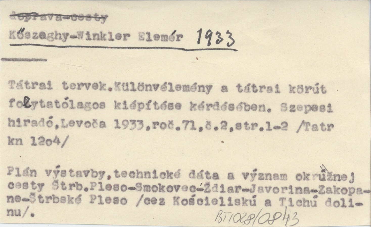 Tátrai tervek.Kükönvélemény a tátrai körút folytatólagos kiépftése kérdésében.
