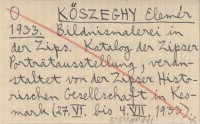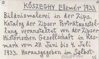 KŐSZEGHY Elemér 1933 Bildnismalerei in dr Zips. Katalog der Zipser Porträtausstellung, veranstaltet von der Zipser Historischen Gesellschaft in Kesmark (27.VI. bis 4.VII. 1933).