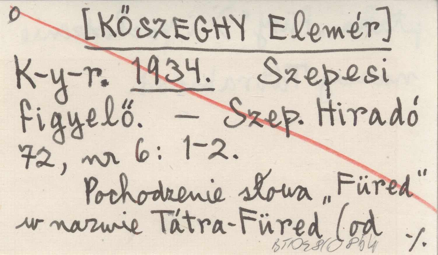 Szepesi Hiradó, 72, nr 6: 1-2. Pochodzenie słowa "Füred" w nazwie Tátra-Füred (od ptaka "fürj") i pochodzenie nazwy Tátrakiesd.