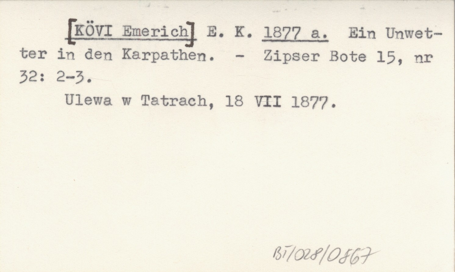 E. K. [KÖVI Emerich] 1877 a Ein Unwetter in den Karpathen.