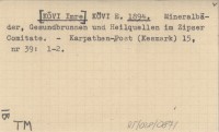 [KÖVI Imre] KÖVI, E. ; 1894 Mineralbäder, Gesundbrunnen und Heilquellen im Zipser Comitate.