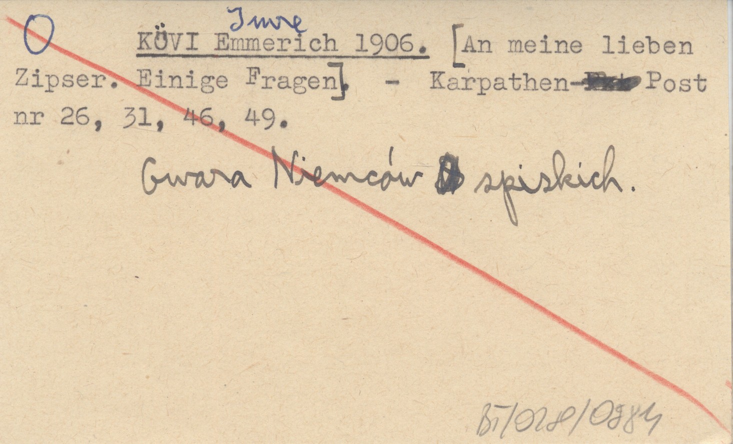 KÖVI Imre 1906 [An meine lieben Zipser. Einige Fragen].