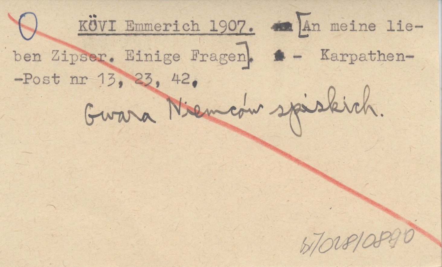 KÖVI Emmerich 1907 [An meine lieben Zipser. Einige Fragen].