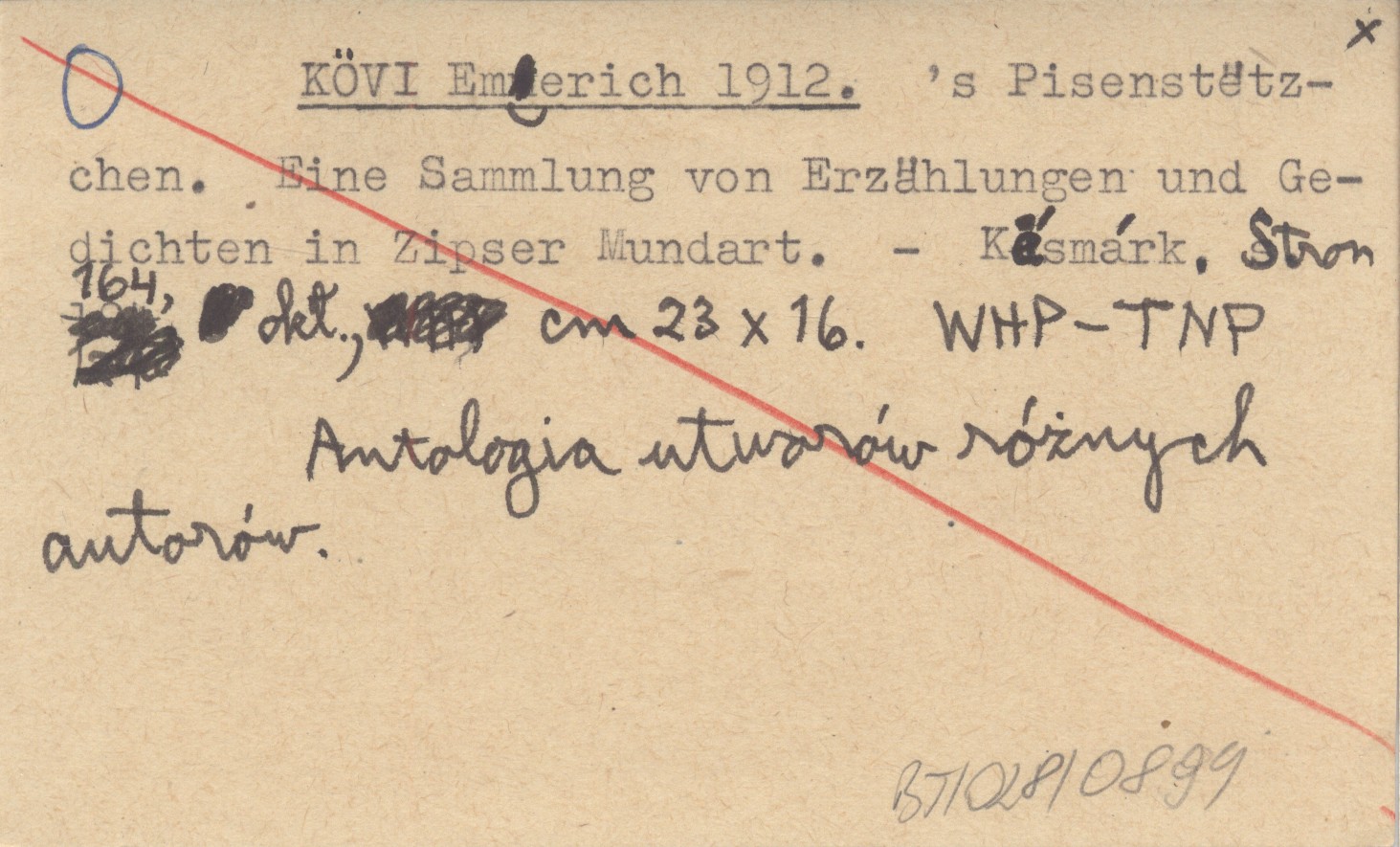 KÖVI Emerich 1912 's Pisenstëtzchen. Eine Sammlung von Erzählungen und Gedichten in Zipser Mundart.