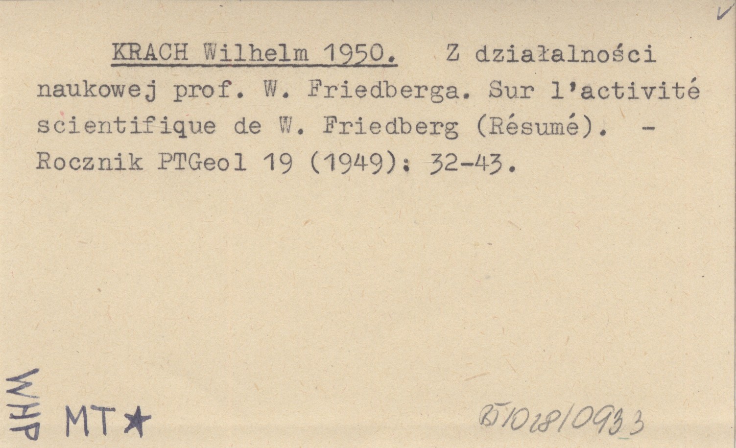 KRACH Wilhelm 1950 Z działalności naukowej prof. W. Friedberga. Sur l'activité scientifique de W. Friedberg (Résumé).