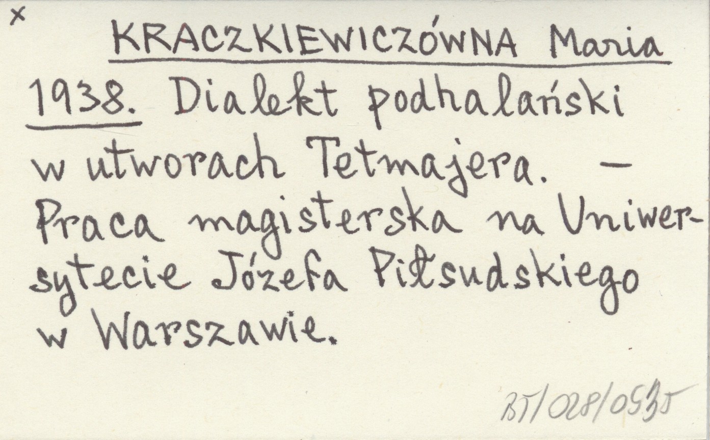 KRACZKIEWICZÓWNA Maria 1938 Dialekt podhalański w utworach Tetmajera.