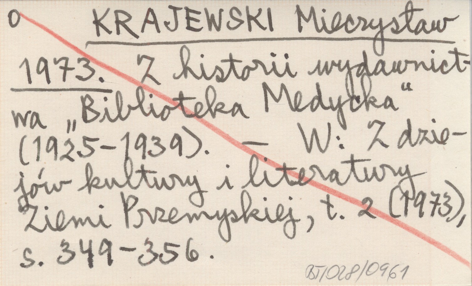 KRAJEWSKI Mieczysław 1973 Z historii wydawnictwa "Biblioteka Medycka" (1925-1939).