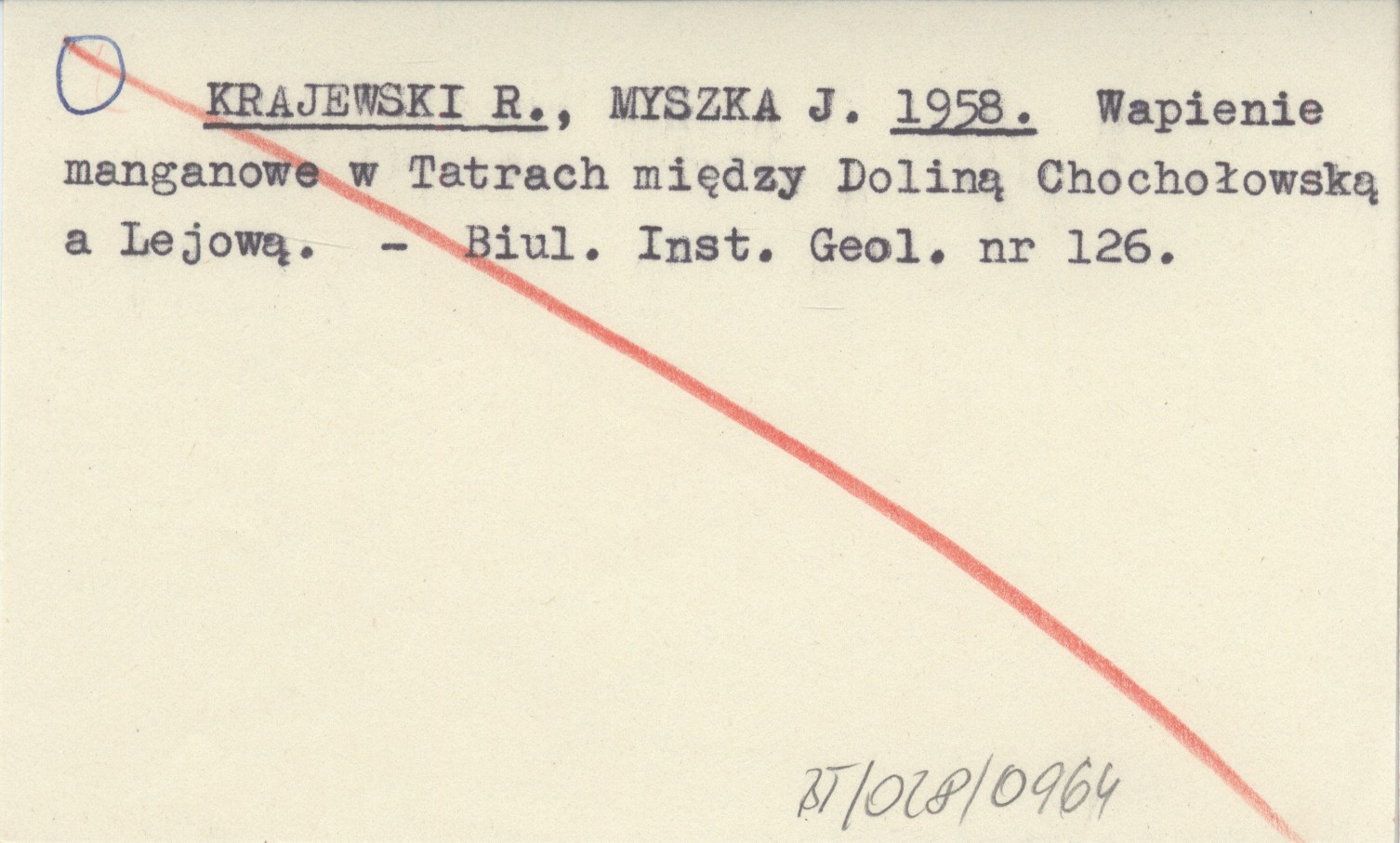KRAJEWSKI R. MYSZKA, J. ; 1958 Wapienie manganowe w Tatrach między Doliną Chochołowską a Lejową.