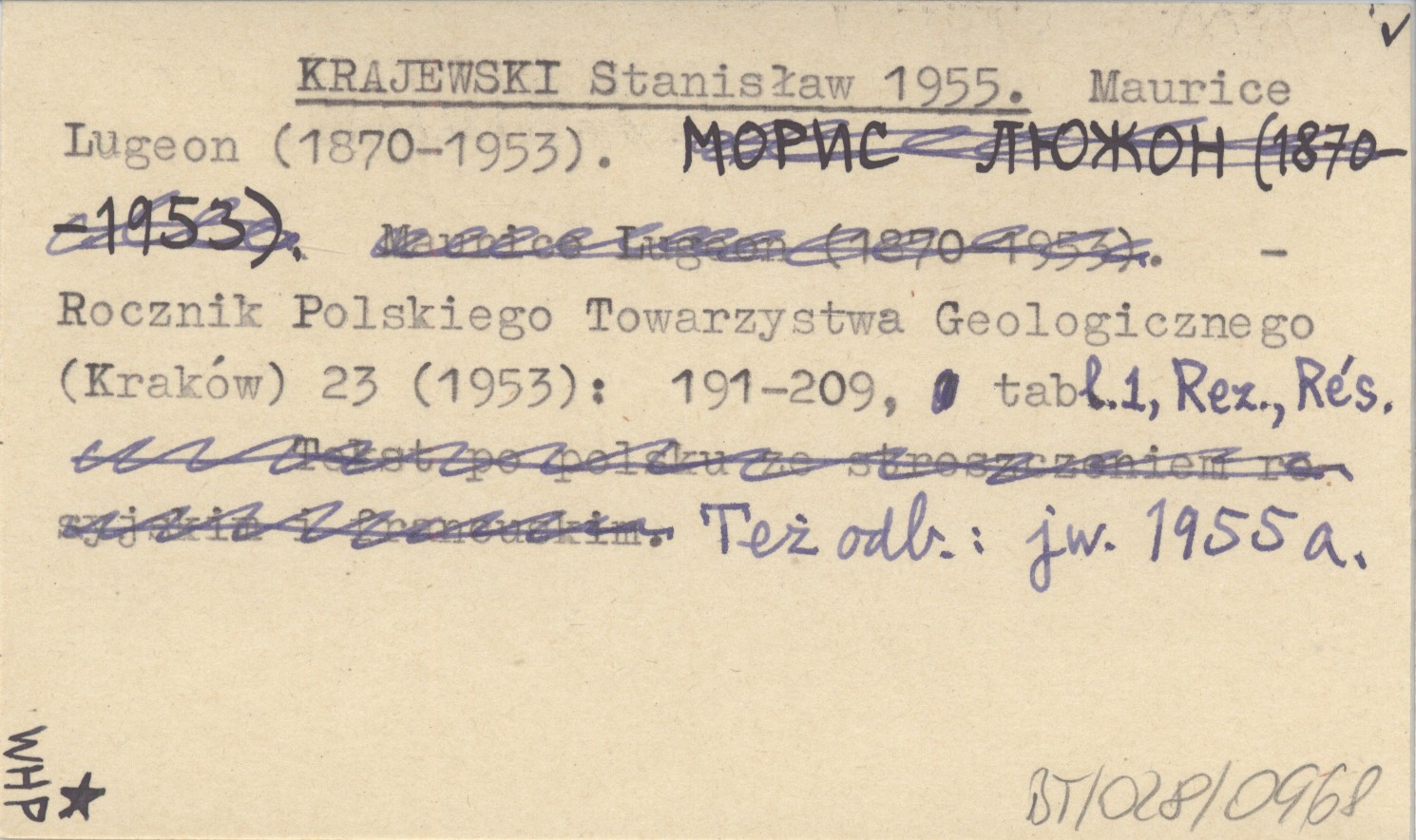 KRAJEWSKI Stanisław 1955 Maurice Lugeon (1870-1953).