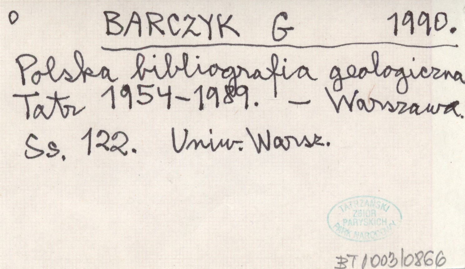 BARCZYK G. 1990 Polska bibliografia geologiczna Tatr 1954-1989.
