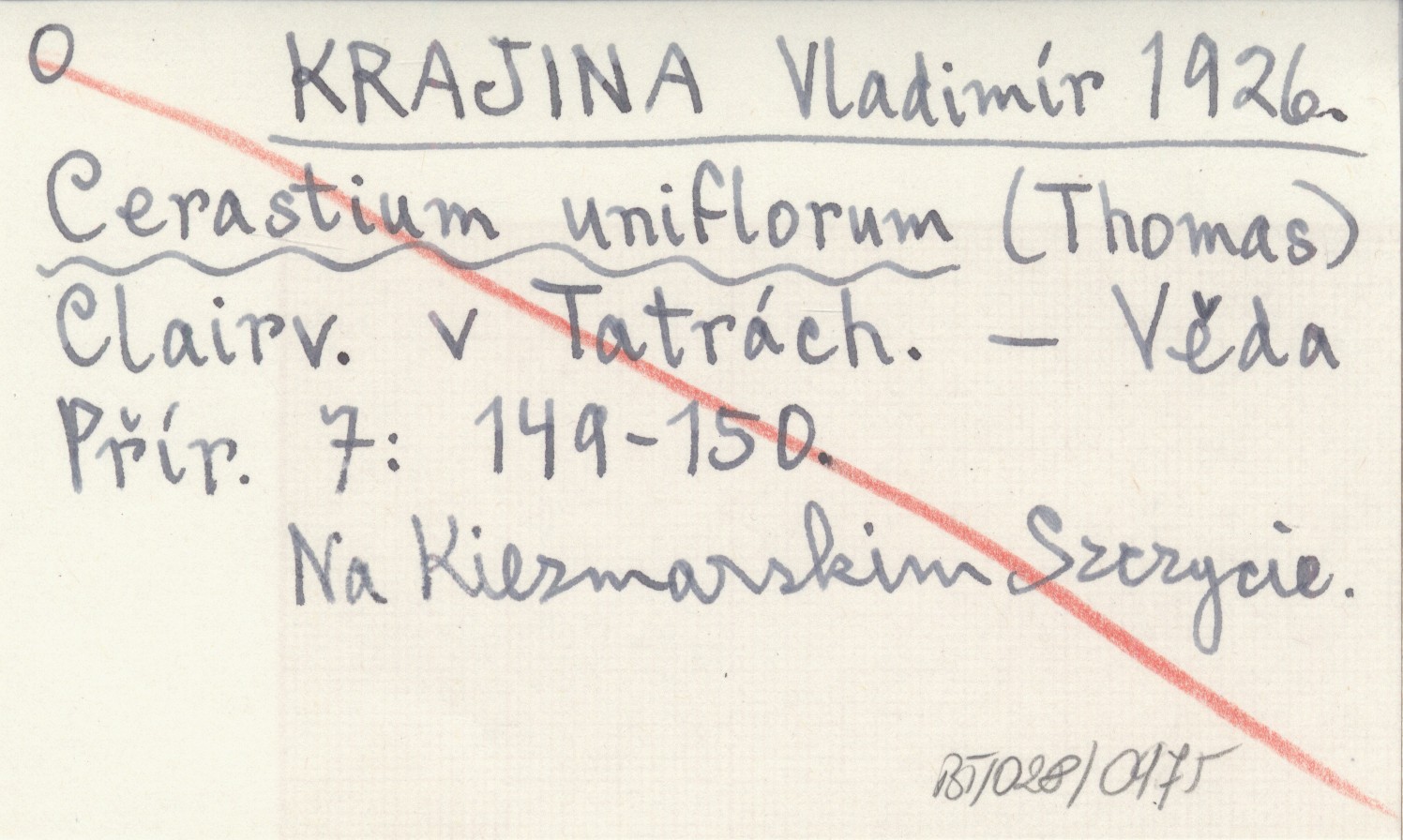 KRAJINA Vladimír 1926 Cerastium uniflorum (Thomas) Clairv. v Tatrách.