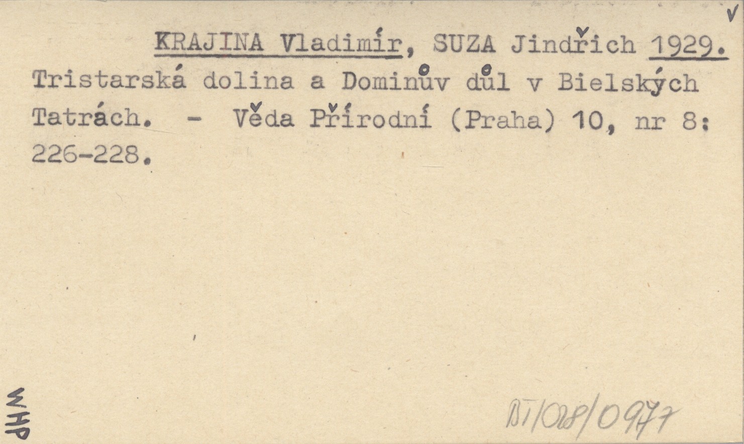 KRAJINA Vladimír SUZA, Jindřich. ; 1929 Tristarská dolina a Dominův důl v Bielských Tatrách.