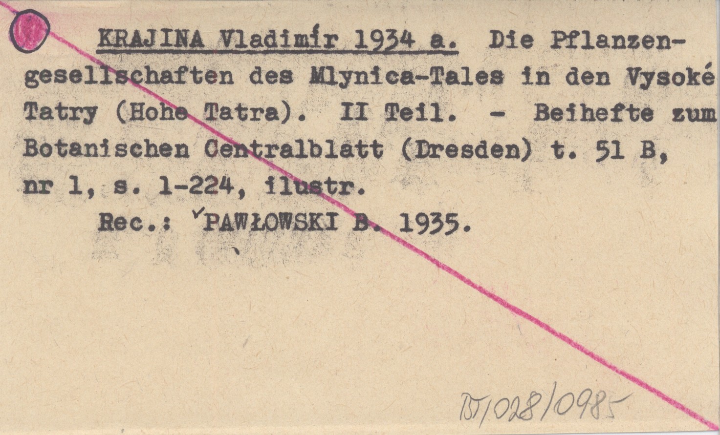 KRAJINA Vladimír 1934 a Die Pflanzengesellschaften des Mlynica-Tales in den Vysoké Tatry (Hohe Tatra). II Teil.