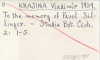 KRAJINA Vladimír 1939 To the memory of Pavel Sillinger.