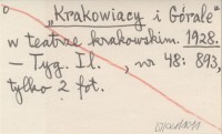 "Krakowiacy i Górale" w teatrze krakowskim. 1928