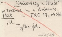 "Krakowiacy i Górale" w teatrze m. w Krakowie. 1928