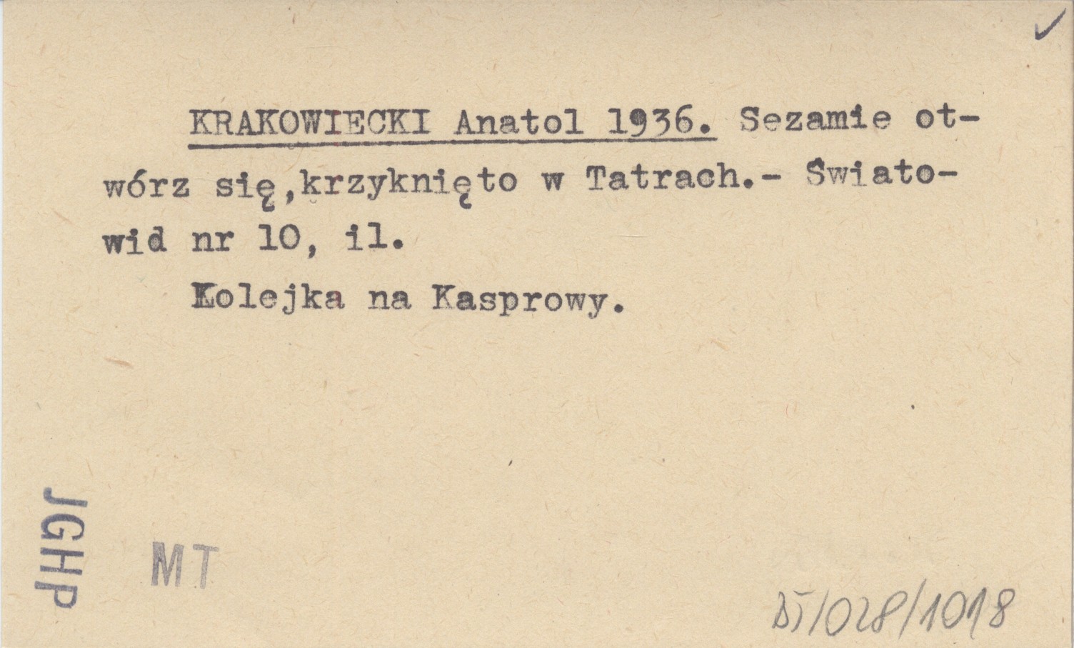 KRAKOWIECKI Anatol 1936 Sezamie otwórz się, krzyknięto w Tatrach.