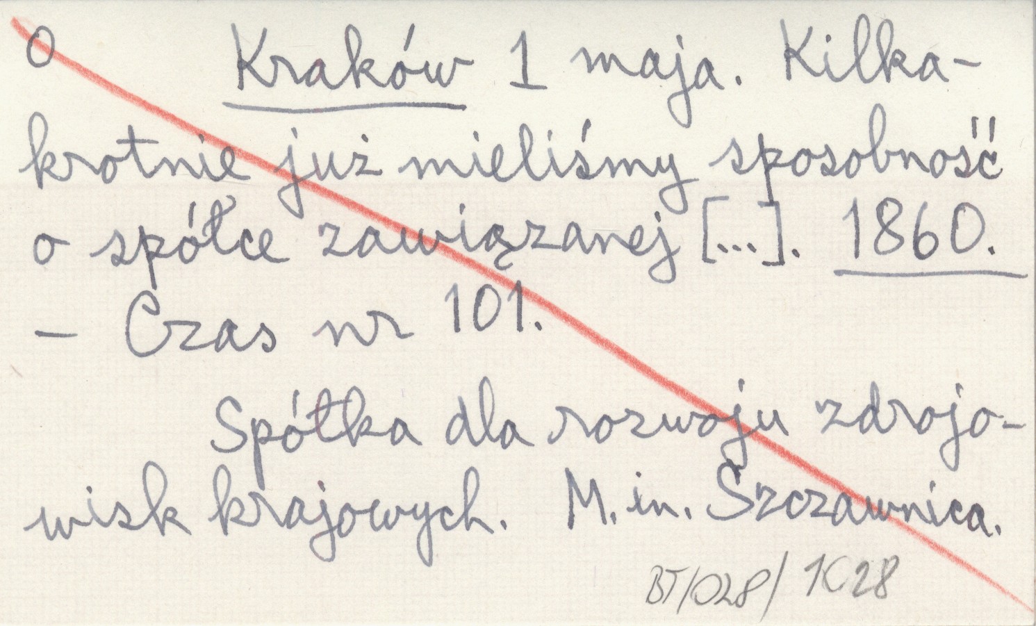 Kraków 1 maja. Kilkakrotnie już mieliśmy sposobność o spółce zawiązanej [...]. 1860