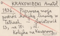 KRAKOWIECKI Anatol 1936 Pierwsza moja podróż kolejką linową w Tatrach.