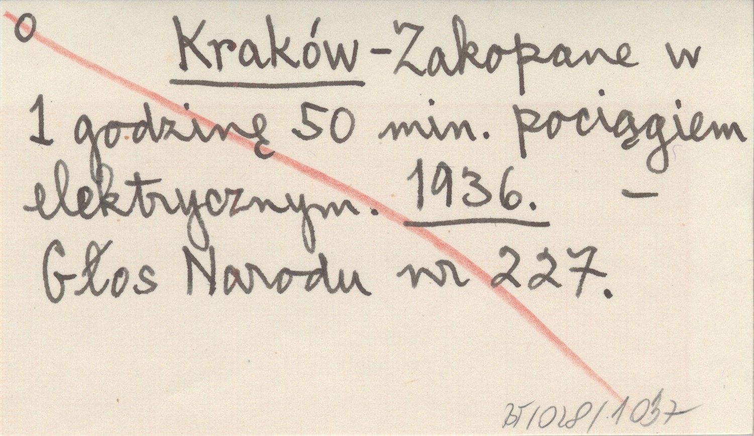Kraków-Zakopane w 1 godzinę 50 min. pociągiem elektrycznym. 1936