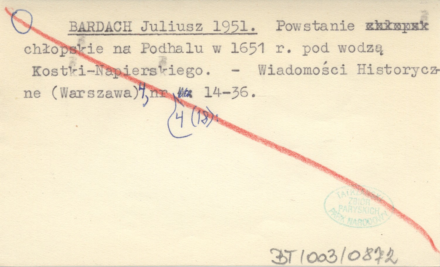 BARDACH Juliusz 1951 Powstanie chłopskie na Podhalu w 1651 r. pod wodzą Kostki-Napierskiego.