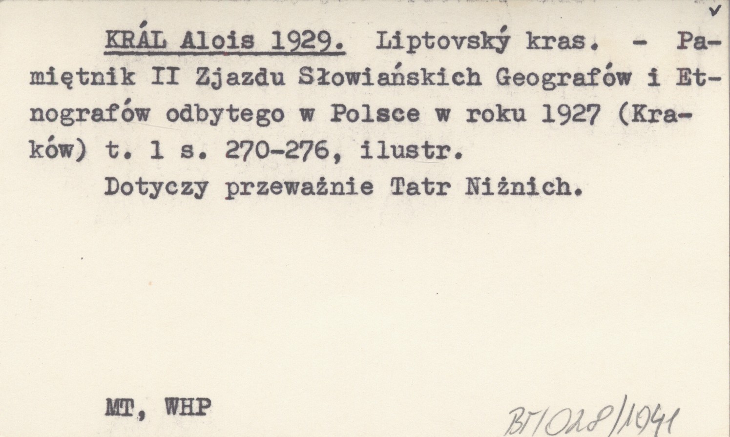Pamiętnik II Zjazdu Słowiańskich Geografów i Etnografów odbytego w Polsce w roku 1927 (Kraków) , T. 1: 270-276, il. Dotyczy przeważnie Tatr Niżnich.