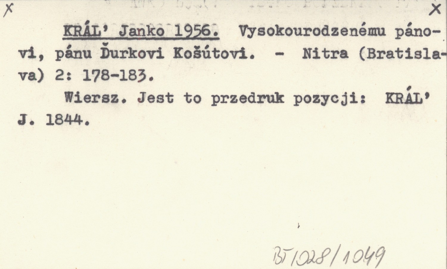 Nitra (Bratislava) , 2: 178-183. Wiersz. Jest to przedruk pozycji: KRÁĽ J. 1844