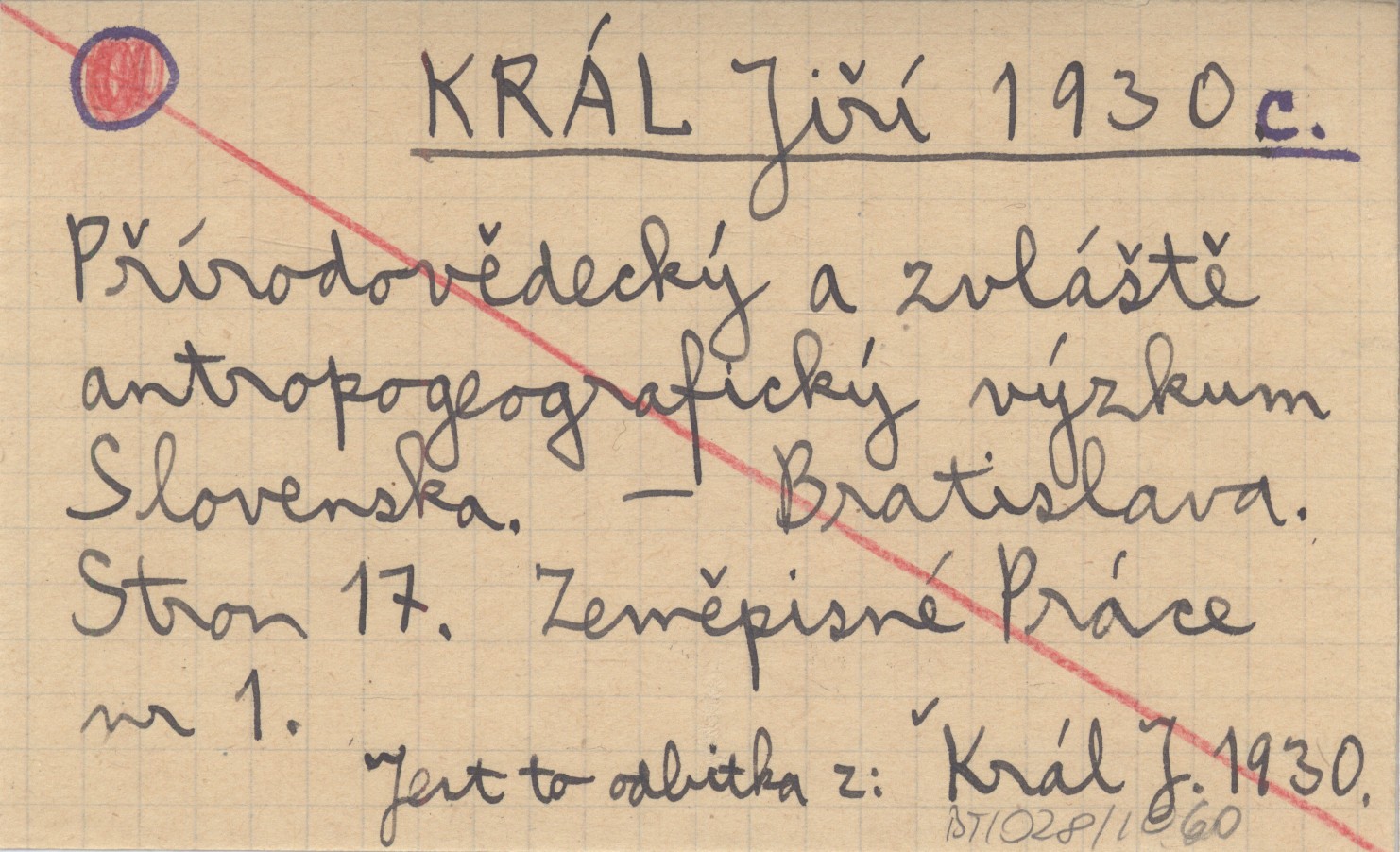 KRÁL Jiří 1930 c Přírodovědecký a zvláątě antropogeografický výzkum Slovenska.