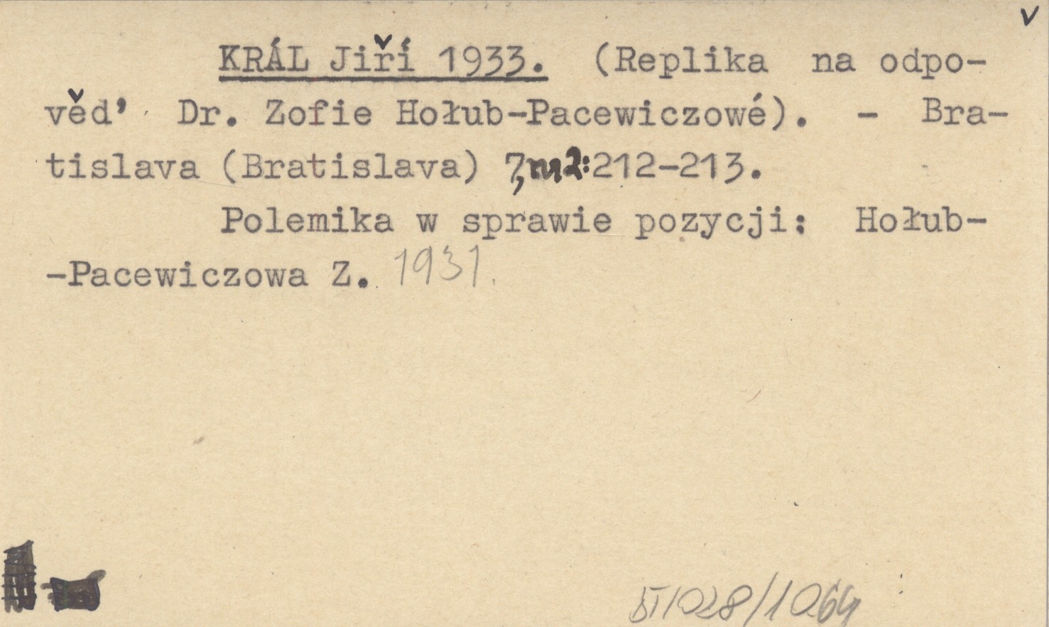 KRÁL Jiří 1933 (Replika na odpověd' Dr. Zofie Hołub-Pacewiczowé).