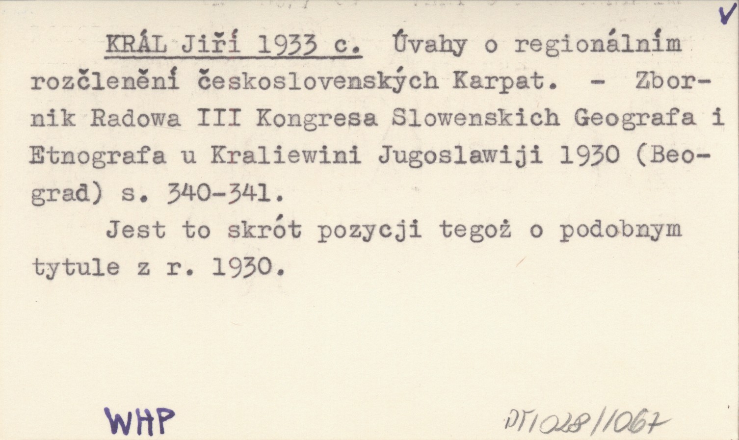 Zbornik Radowa III Kongresa Slowenskich Geografa i Etnografa u Kraliewini Jugoslawiji 1930 (Beograd) , D. 340-341. Jest to skrót pozycji tegoż o podobnym tytule z r. 1930.