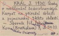 KRÁL J. 1930 Úvahy o rozčlenění československých Karpat na přírodní oblasti a pojmenování těchto oblastí.
